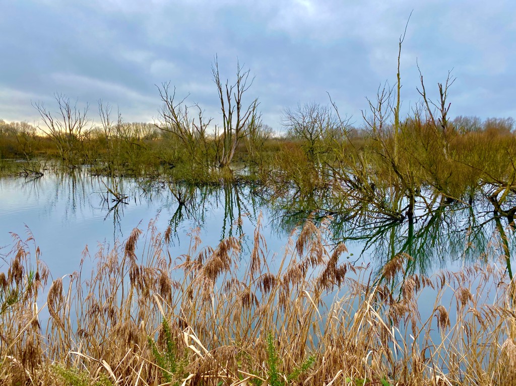 Yesterday we conducted the monthly Wetland Bird Survey (WeBS), in relatively mild conditions. When the beds all freeze over, as they did recently, a lot of our water-birds move off, some to the coast and others to the River Mersey or Manchester Ship Canal, both of which usually remain ice-free and add to the habitat variety which the Reserve offers. Our team of voluntary wardens covered all of the Reserve’s many water bodies, with some valuable input from a members of the Fylde Bird Club who were on a day-visit, producing an excellent total of 2271 water-birds. Highlights included: 2 Woodcock, 5 Water Rails, 6 Goldeneye, 1 Kingfisher, 624 Tufted Duck, 555 Teal, 14 Shelduck and 51 Pochard. As ever, with so many birders present there were a few nice additional sightings, including 3 Marsh Harriers, 26 Siskins, 10 Redpolls, 6 Fieldfares, 25 Redwings, 80 Greenfinches and 100 Chaffinches. Photo of the habitat created on No.2 bed by the Peel Port’s dredging activity. Cheers David Bowman (with Helen Wynn, Brian Baird et al)
